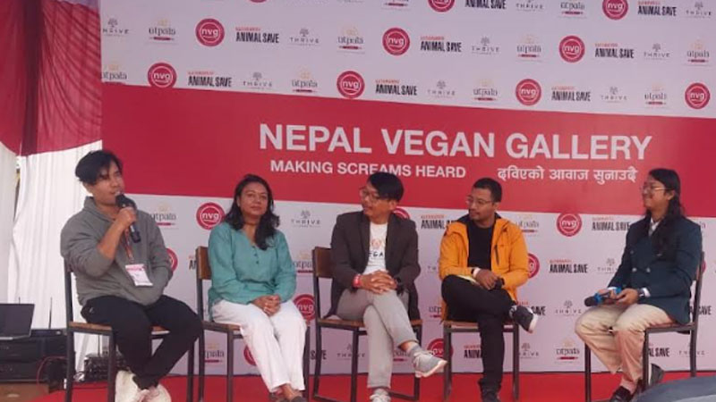 काठमाडौँको बौद्धस्थित उत्पला क्याफेमा शनिवार “सर्वप्राणी करुणा र शाकाहार प्रवर्द्धन” शीर्षकमा कला प्रदर्शनी र सांगितिक कार्यक्रम सम्पन्न भएको छ। नेपाल एनिमल सेभ संस्थाद्वारा विश्व भिगन दिवसको अवसरमा आयोजित कार्यक्रममा देश–विदेशका पशुप्रेमी, कलाकार, र अहिंसा अभियन्ताहरूको उल्लेखनीय सहभागिता रहेको थियो।