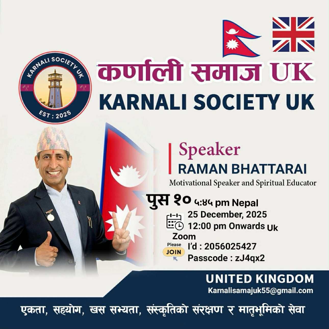 लन्डन । कर्णाली समाज यूकेले परदेशी जीवनका चुनौती र मानसिक स्वास्थ्यसम्बन्धी सचेतना अभिवृद्धि गर्ने उद्देश्यले एक विशेष मोटिभेसनल तथा मानसिक स्वास्थ्य सेमिनार आयोजना गर्ने भएको छ। विदेशमा बसोबास गरिरहेका लाखौँ नेपालीहरूको दैनिकीसँग जोडिएको मानसिक स्वास्थ्य आज अत्यन्तै संवेदनशील र महत्वपूर्ण विषय बन्दै गएको सन्दर्भमा यो कार्यक्रम आयोजना गर्न लागिएको हो।